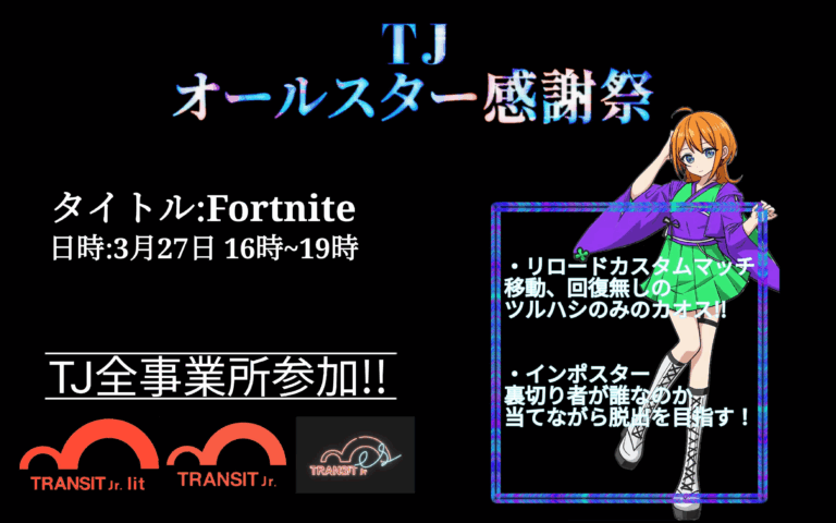 トランジットジュニア・トランジットジュニアlit・TJ-esの3事業所合同フォートナイトイベント